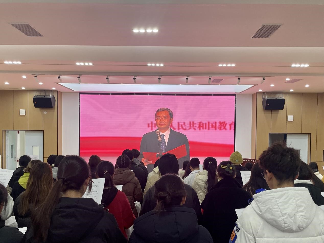 2024年12月4日是第十一个国家宪法日,为深入贯彻党的二十届三中全会关于推进全面依法治国的精神,党委学工部在歧伯楼学术厅开展了国家宪法日宪法晨读活动,百余名学生代表通过网络直播集中收看全省宪法日主题活动并进行同步跟读。