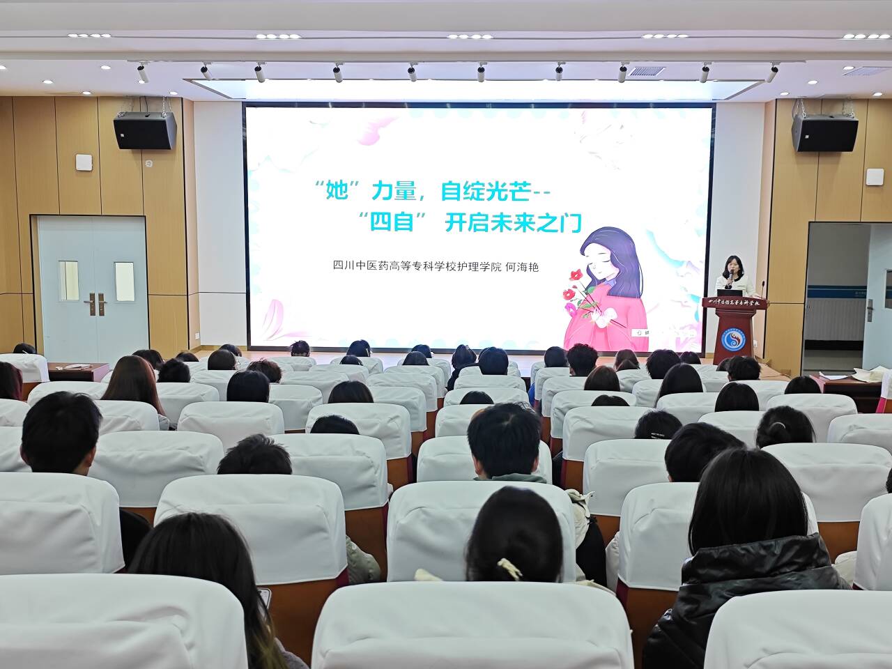 为弘扬新时代女性精神,激励全校女生以“自尊、自信、自立、自强"的品格勇担新时代使命,3月7日,在第115个三八国际妇女节来临之际,由党委学生工作部主办、护理学院协办的"她"力量 自绽光芒——"四自"开启未来之门女生成长关爱专题讲座在北园岐伯楼学术报告厅温馨开讲。护理学院副院长何海艳与200余名女大学生代表共聚一堂,通过理论阐述、案例分享与互动交流,共赴一场关于女性成长与价值实现的思想盛宴。