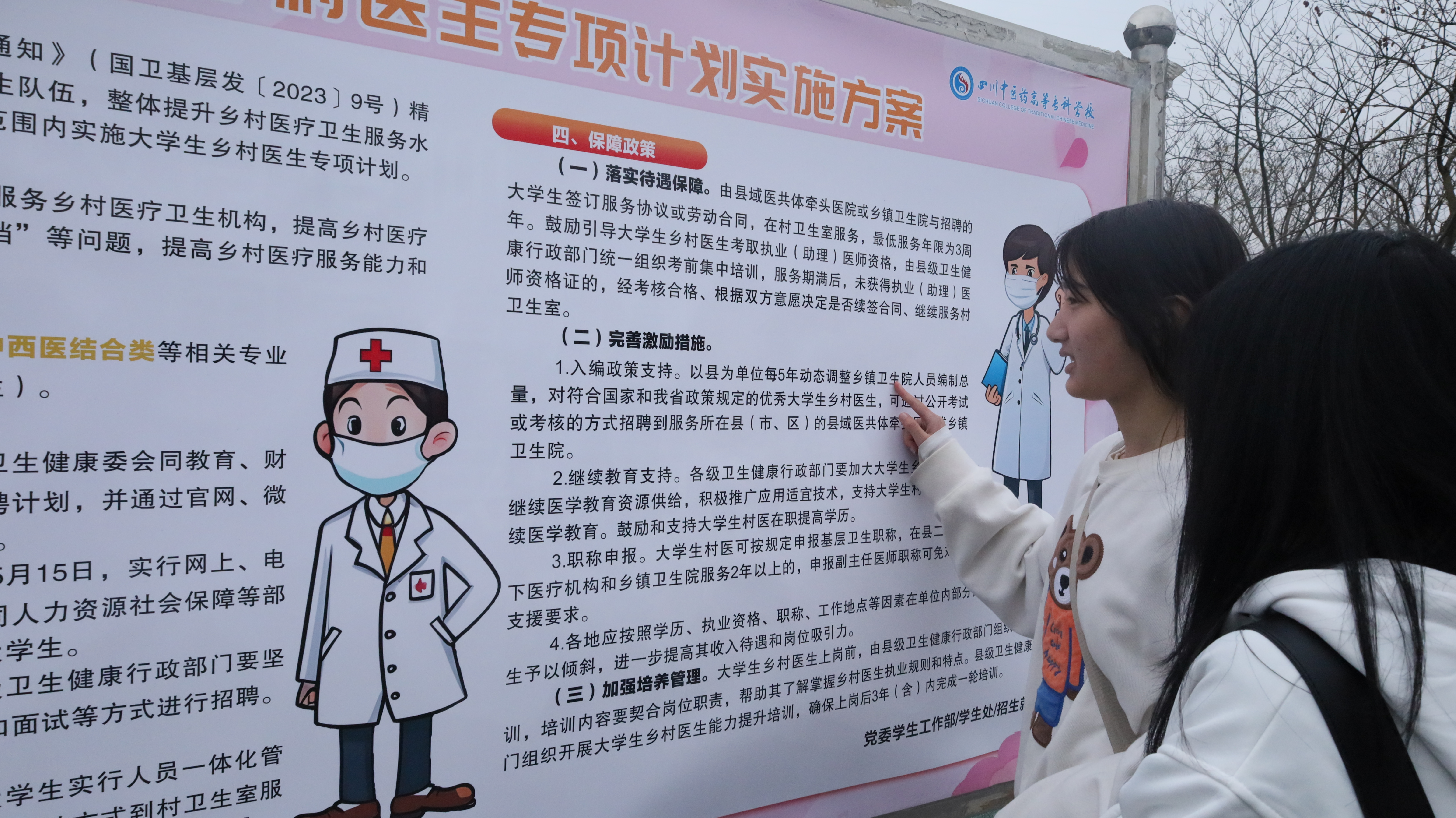 在校内LED屏上,集中展示了习近平总书记关于高校毕业生就业工作的重要论述,强化价值引领,引导学生立志服务基层、勇担使命。同时,设置了专题展板系统解读四川省2025年大学生就业创业扶持政策清单,涵盖基层就业、“三支一扶”计划、“大学生志愿服务西部计划”“大学生乡村医生” 专项、应征入伍、专升本等重点政策。线上通过就业信息网、微信公众号、班级群等平台,推送政策图文解析,构建全方位、立体化的宣传矩阵,确保政策信息触达更多学生。