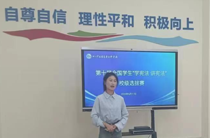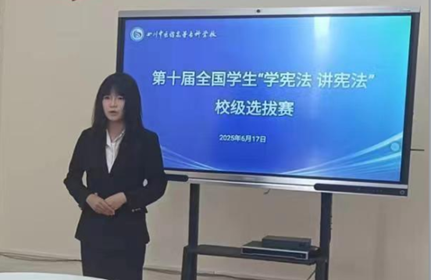 6月17日,第十届四川省学生“学宪法 讲宪法”演讲比赛学校预选赛在北园礼堂二楼心理团辅室举行。本次比赛旨在深入贯彻习近平法治思想,加强青少年学生的宪法意识与法治观念,营造尊法学法守法用法的良好校园氛围,进一步推动我校学生法治宣传教育常态化长效化。来自各学院的7名优秀选手,经过精心准备,围绕“学宪法 讲宪法”这一主题,展开了激烈而精彩的角逐。