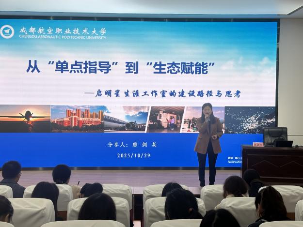 培训中,虞剑英老师分享了其主持的“启明星生涯工作室”在建设与发展中的宝贵经验。以课堂、活动、资源为核心支柱,构成“三维六翼”生态赋能体系,推动学生工作从粗放式管理向精细化、个性化赋能全面升级,解决学生成长的共性困惑。她强调,辅导员工作室建设应紧密结合学校与专业特色,打造独具特色的育人品牌。