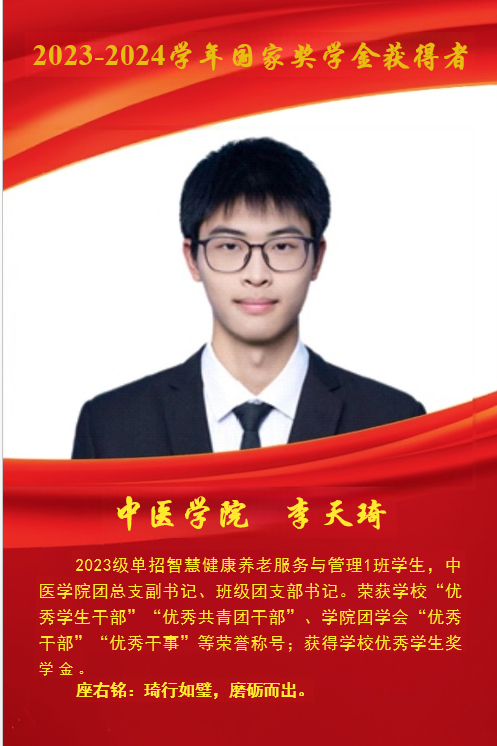 2023-2024学年国家奖学金获得者--中医学院 李天琦
