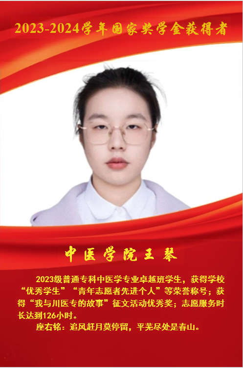 2023-2024学年国家奖学金获得者--中医学院 王琴