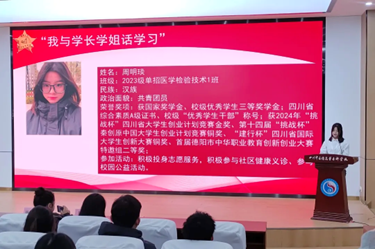 周明琰同学分享宝贵学习经验。周明琰同学分享学习经验时坦言,入学初期因理科基础薄弱而倍感压力,但意识到专业成绩和第二课堂学分的重要性后,她刻苦钻研,兼顾学习与活动。她建议同学们课堂专注听讲、善用网络资源、认真完成作业,面对挫折不轻言放弃,树立目标持续努力,希望这些经验能够帮助到同学们。