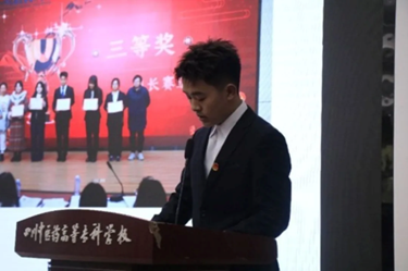 2024级干事代表刘栖瑞回顾上学期个人工作。刘栖瑞同学通过参与学院组织的各类活动,不仅丰富了大学生活,更在实践中提升了协调沟通和团队协作能力,同时也认识到自身的不足。他表示,将继续秉持为老师同学服务的初心,持续学习,不懈努力。