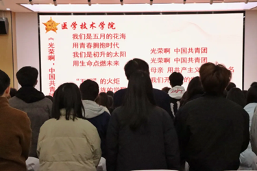 师生集体合唱《光荣啊,中国共青团》。