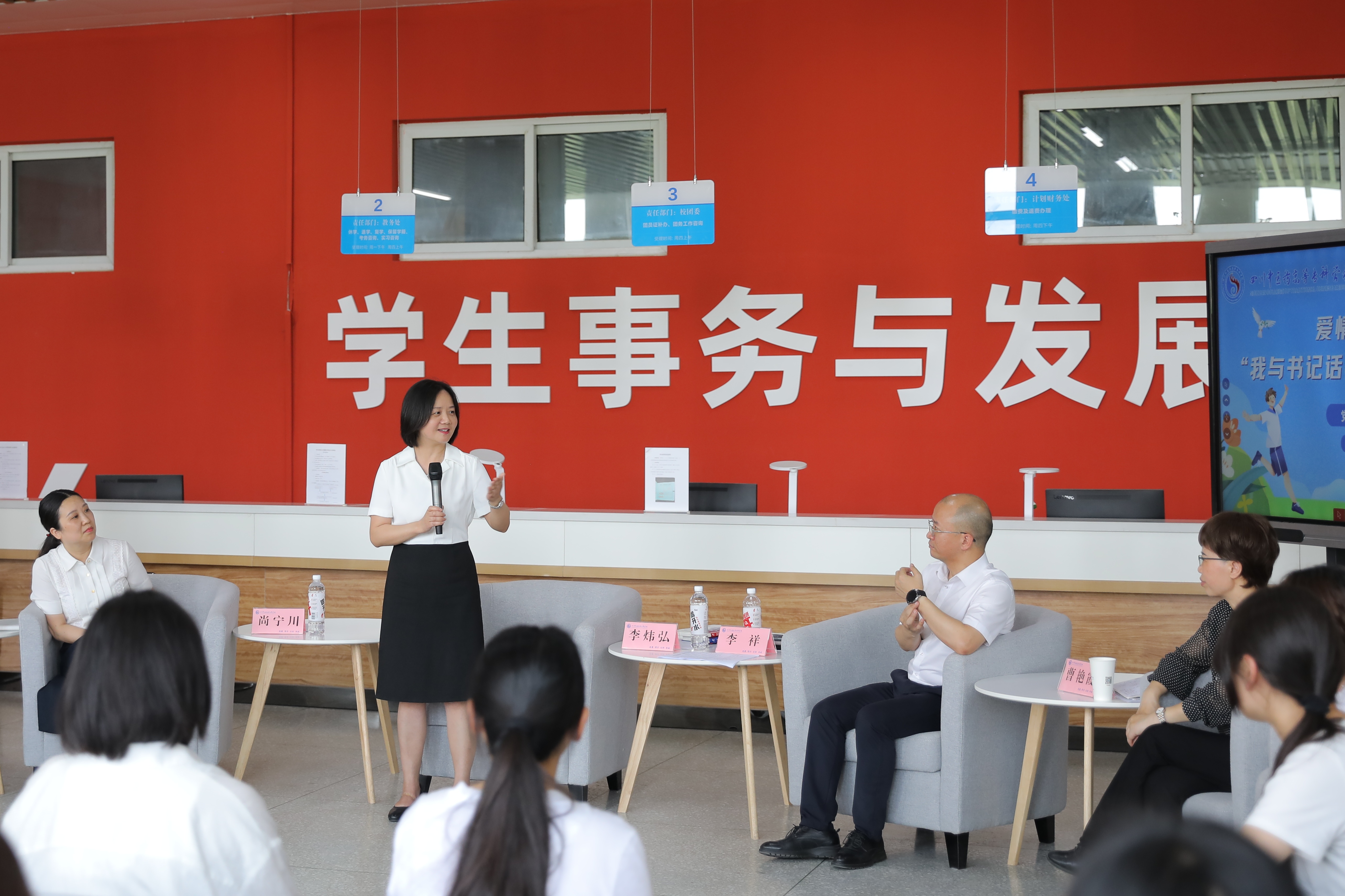 长期以来,我校党委高度重视青年学生的思想引领和心理关怀,坚持以“一站式”学生社区为载体,校领导、管理干部、专任教师等育人力量常态化深入学生一线,与学生面对面交流。学校以学生关注的热点问题为“小切口”,持续破解教育管理服务“最后一米”的问题,不断增进师生情感联系,提高育人实效。