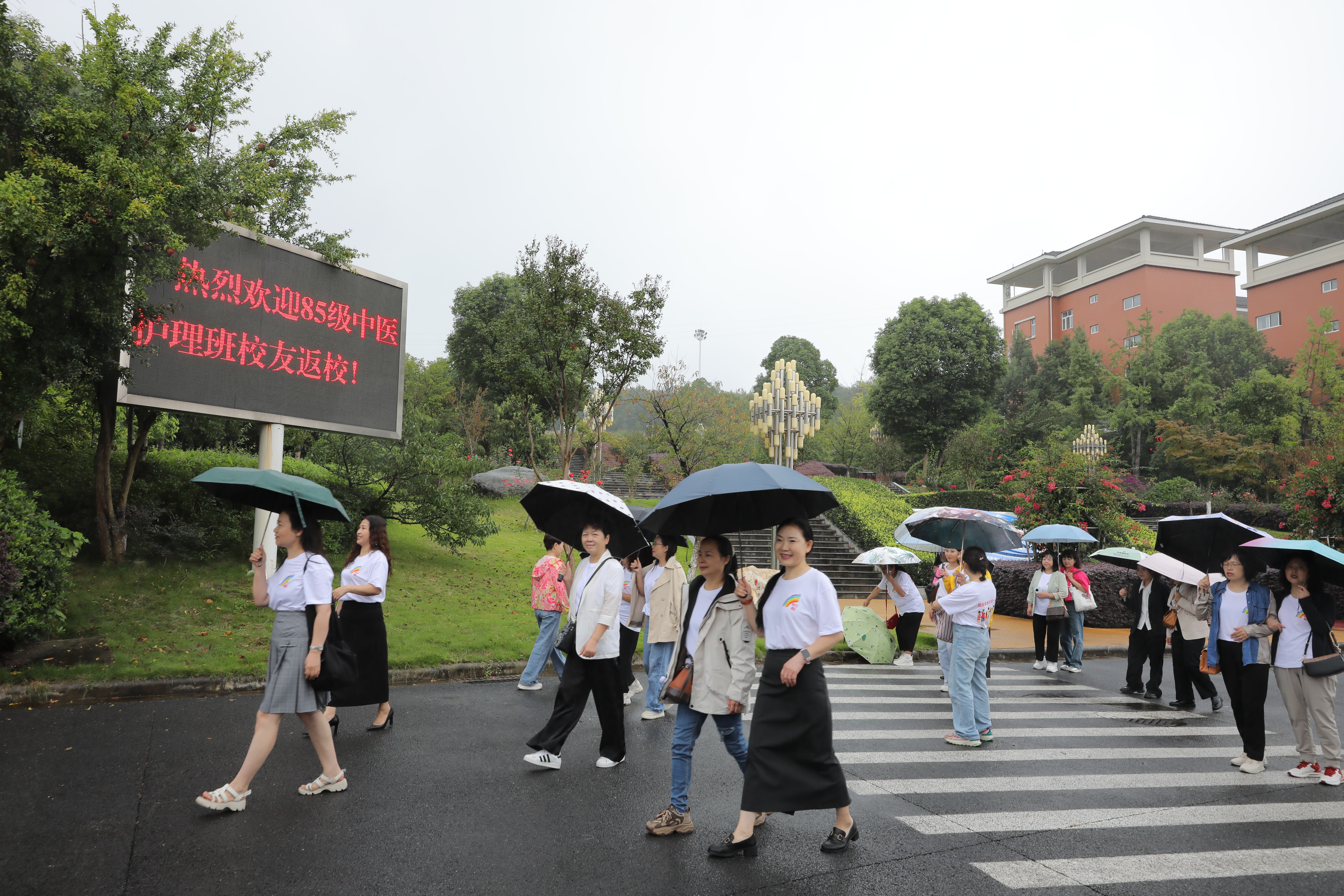 同时,85级中医护理班的老校友们还参观了学校综合楼、南园图书馆、在建的康养实训大楼、同心桥、北园教学楼及校史馆。行走在熟悉又陌生的校园里,大家不时驻足观看、拍照留念,曾经的青春记忆涌上心头,仿佛又回到了40年前那个朝气蓬勃的“少年时代”。