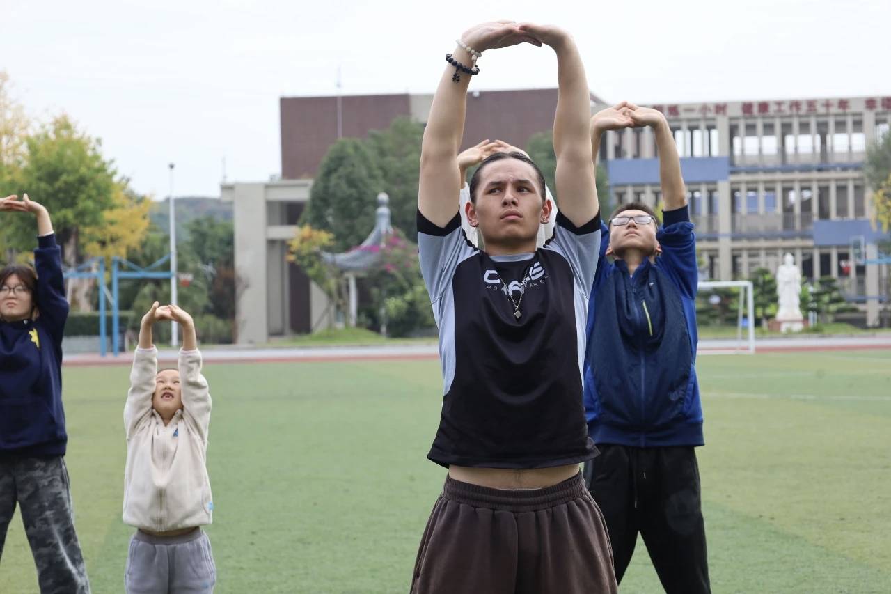 当五禽戏成为焦点,一场“模仿与感知”的互动悄然展开。我们从热身开始,将虎之威猛、鹿之安舒、熊之沉稳、猿之灵巧、鸟之轻捷——拆解教学。交流生在模仿中逐渐体悟:原来每个看似简单的动作背后,都藏着对身体平衡与呼吸配合的极高要求,也真正理解了“大道至简”的东方智慧。