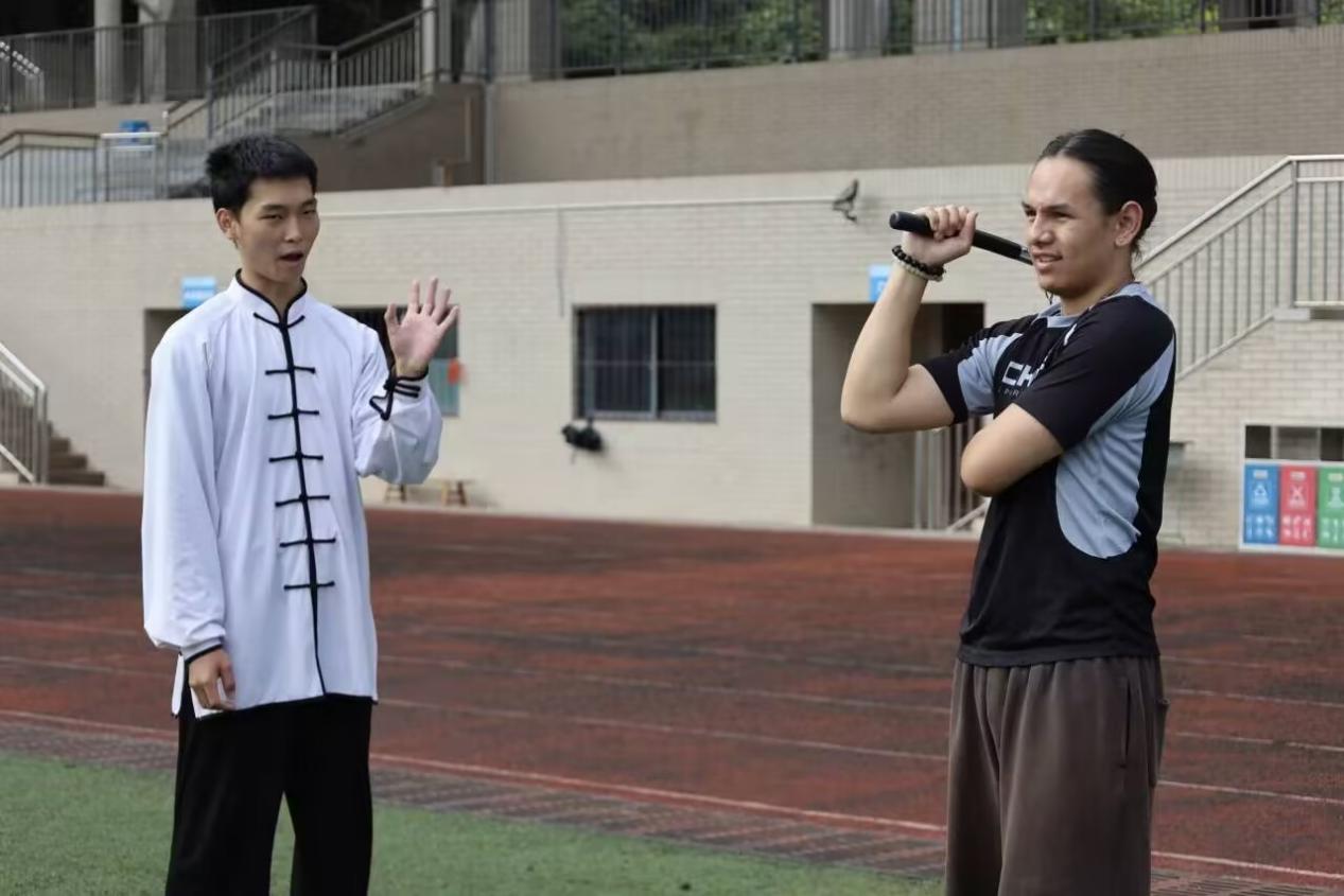 压轴登场的是双截棍与长枪表演。双截棍如银蛇飞舞,刚劲中透出轻灵;长枪刺出如游龙穿空,气势如虹。每一招都干净利落,每一式都洒脱自如,将中华武术的阳刚之美演绎得淋漓尽致,也引来交流生阵阵掌声与喝彩。(校团委供稿)